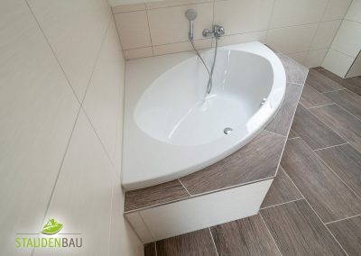 Alternativ können Sie dadurch die Räumlichkeiten im OG ebenfalls als Ankleide oder Bürozimmer nutzen. Das Tageslicht-Bad ist überaus umfangreich ausgestattet. Unter anderem finden Sie vor: Badewanne samt Armaturen und Brause, begehbare bodenebene Dusche einschließlich hochwertiger Glas-Duschwand, Waschtisch mit Unterputz-Radio, wandhängende Toilette mit Druckspüler der Marke Grohe und absenkbarem Deckel sowie einem Badheizkörper.